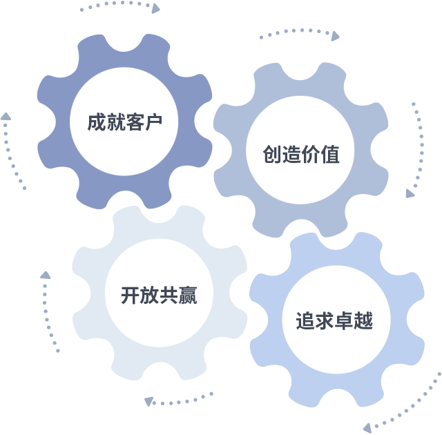 成就客户是一切决策的出发点,创造价值是衡量所有工作的标准,追求卓越是ag博天堂做事做人的态度,开放共赢是ag博天堂的格局也是最终的结果。价值观的齿轮环环相扣,推动着组织里的每个人不断向前。